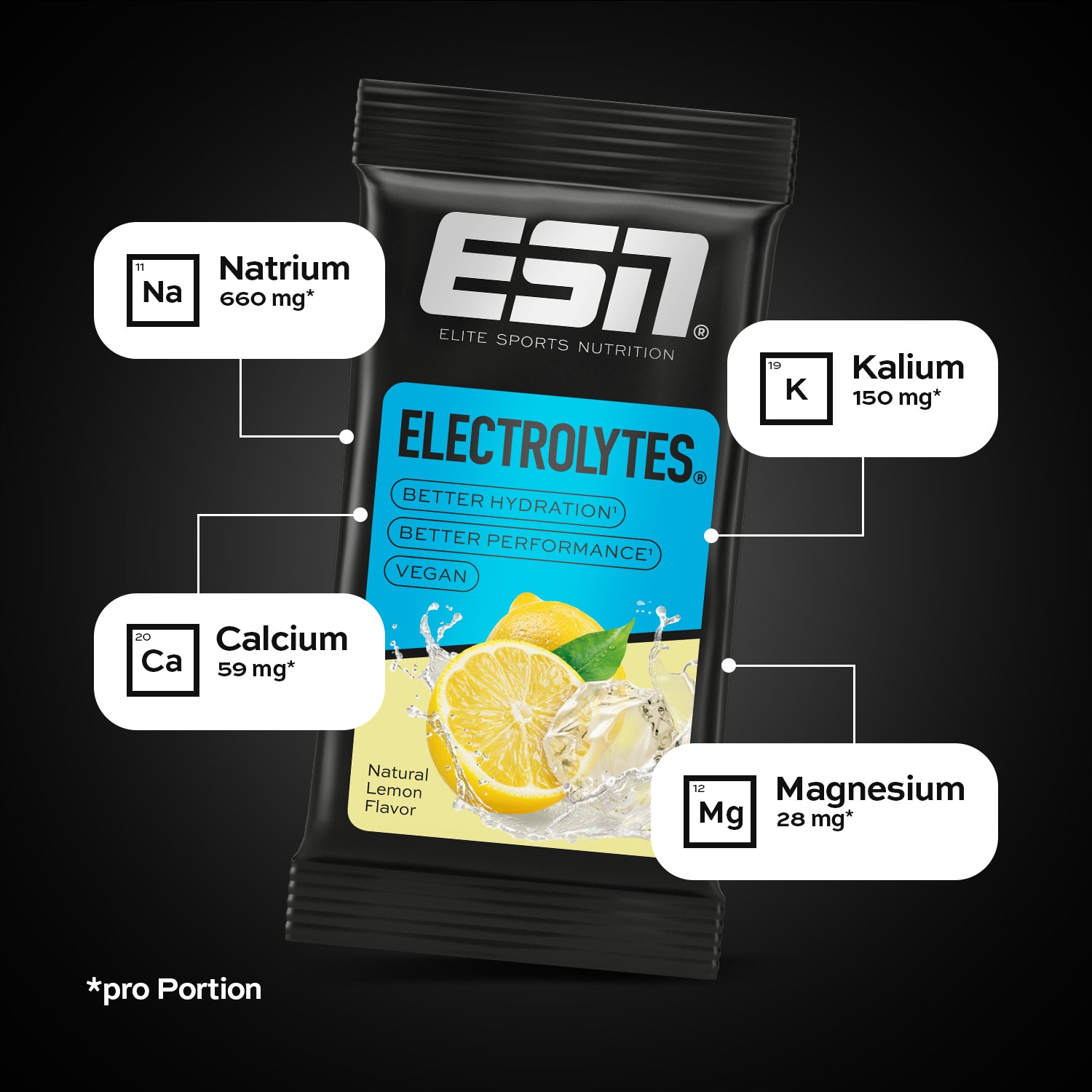 - Mit Kalium, Natrium, Calcium, Magnesium, Chlorid & Kohlenhydraten (Dextrin)