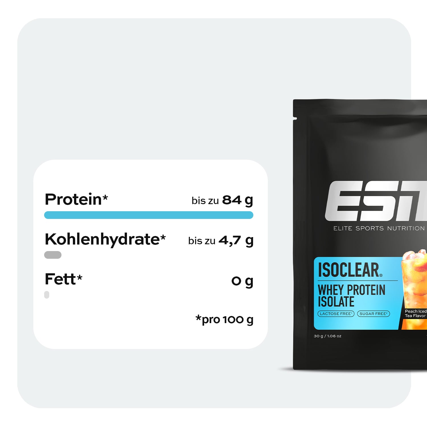 Try germany’s no. 1 clear whey: Isoclear®.1 Deutschlands Nr. 1 Clear Whey gibt’s jetzt in der praktischen Probierbox: Erlebe Protein-Power in 5 erfrischenden Bestseller-Sorten, die je nach Flavor wie ein Eistee, eine Limo oder ein Softdrink schmecken – ohne Fett, Zucker und Laktose.1,2