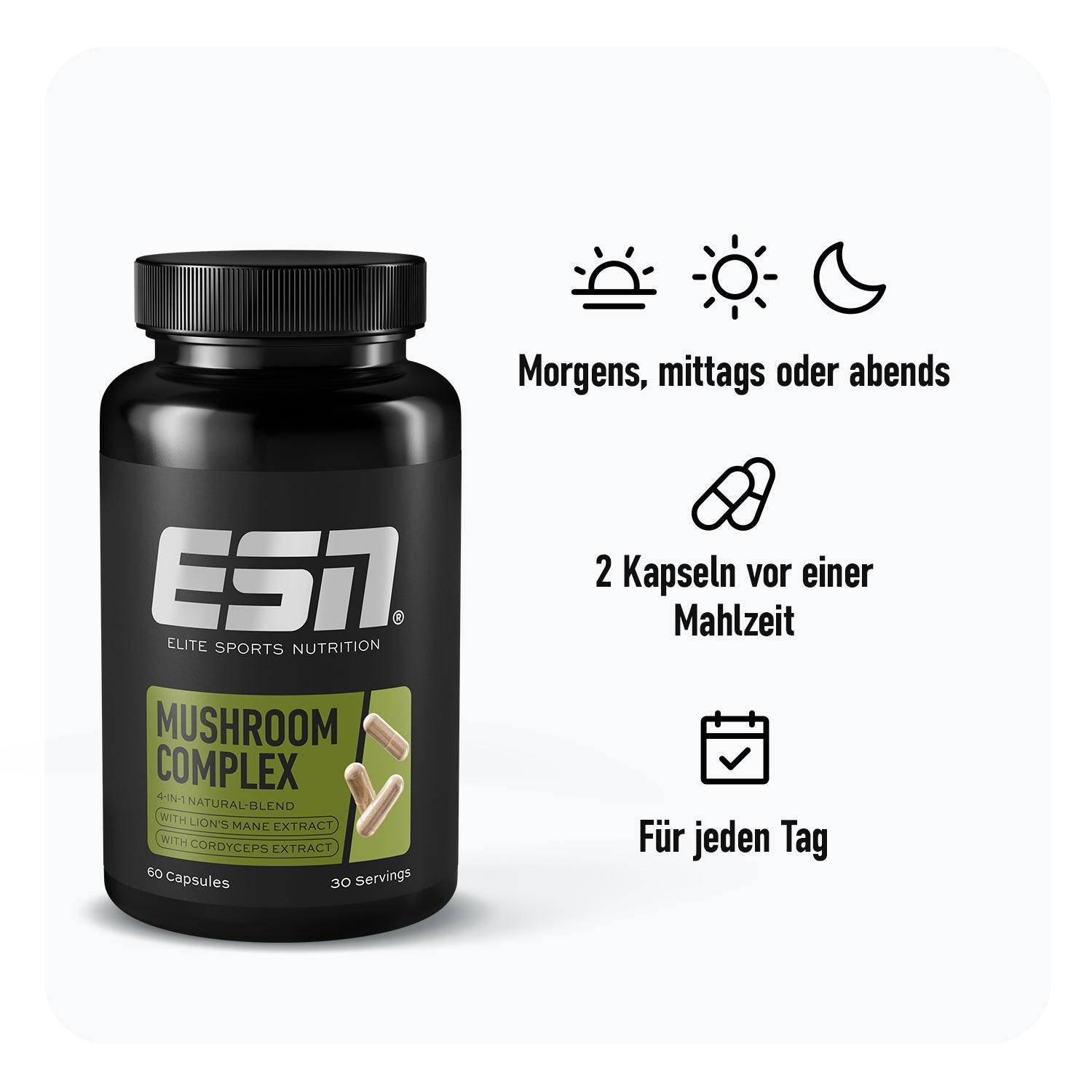 - Hochdosierte Mushroom-Power aus Lion’s Mane, Cordyceps, Reishi & Chaga