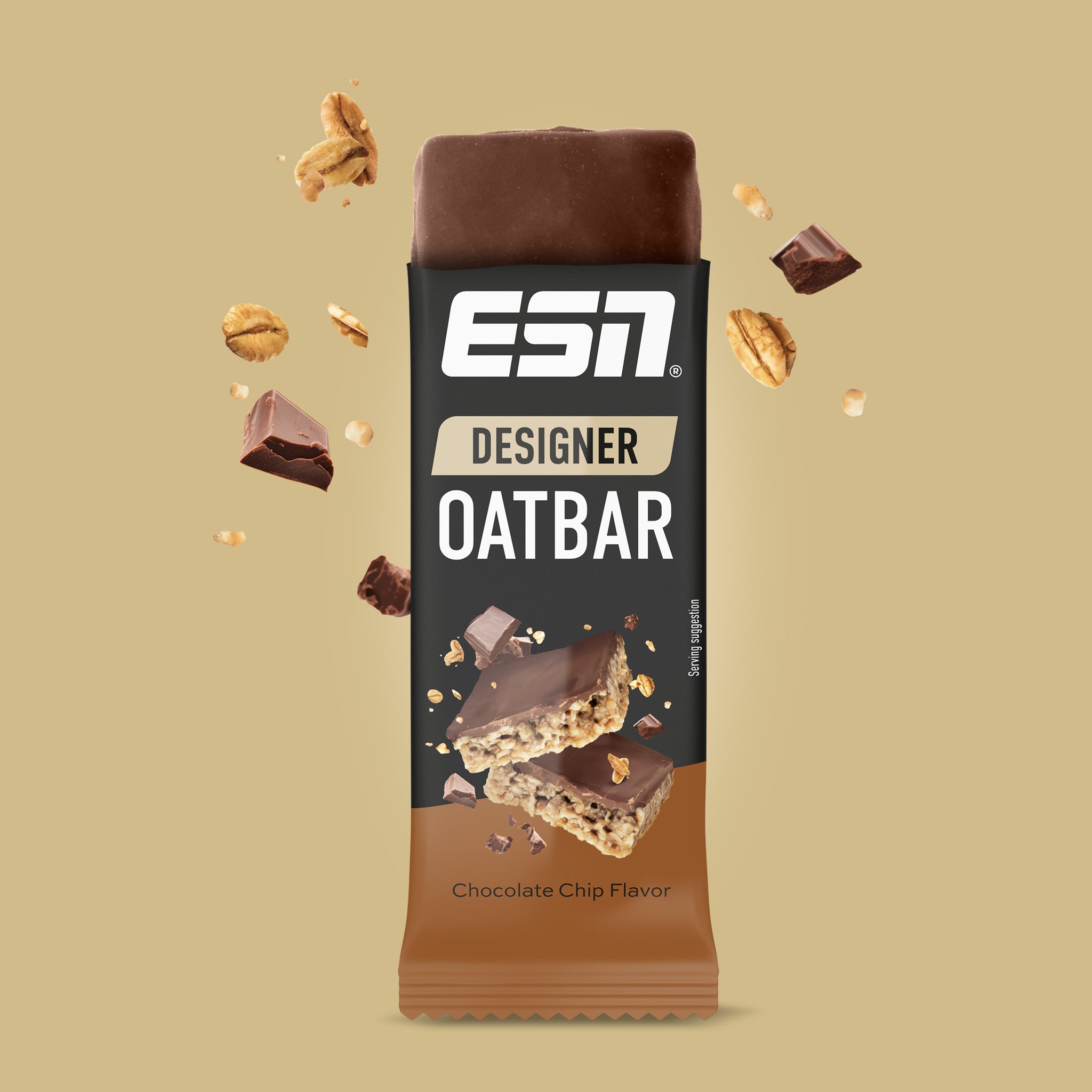 Oats for power. Our ESN Designer Oatbar delivers valuable energy whenever and wherever you need it – post-workout, during competitions, or simply as a midday boost. Discover the perfect blend of strength and recovery aid, deliciously packaged as a fudgy oat bar with a delicate coating.