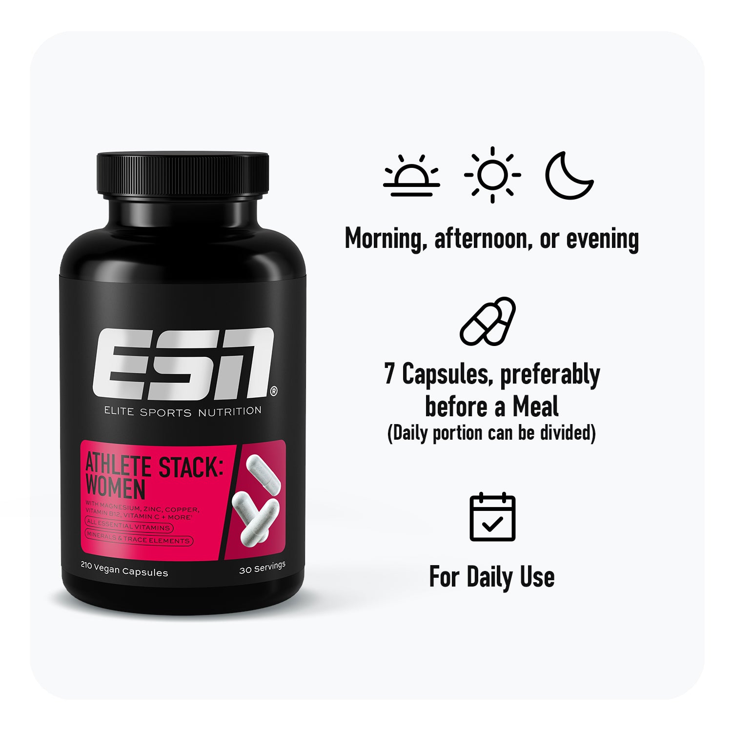 All-in-One Support with our Athlete Stack. This effective Blend of Nutrients provides you with an optimal dose of Vitamins, Minerals, and Trace Elements. Specifically Formulated with your Activity Level and Gender in mind to offer maximum Support.