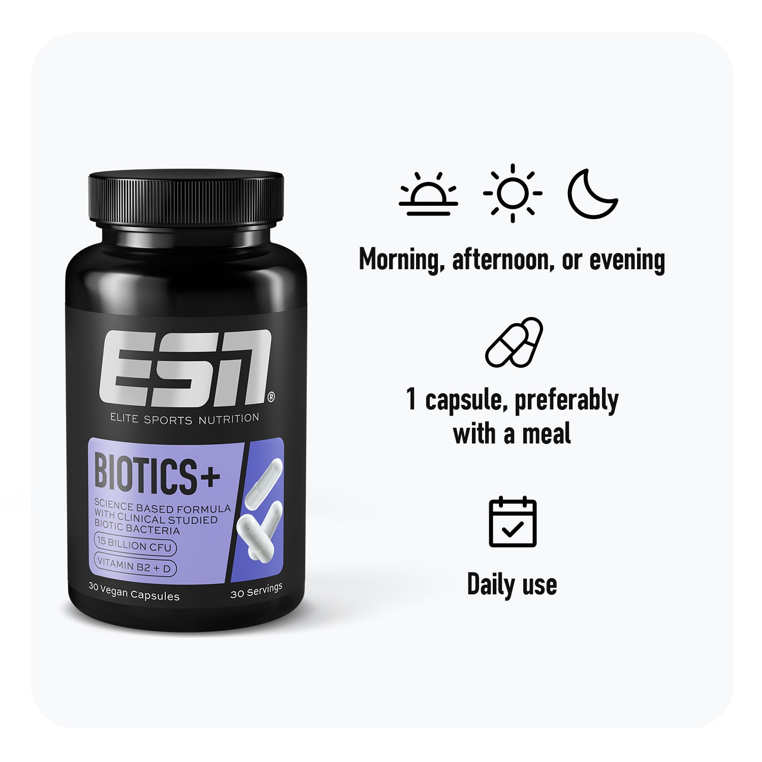 Biotics+ is a clinically tested bacterial complex, combined with vitamins B2 and D, and developed in collaboration with one of the world’s leading probiotic researchers. The formula helps reduce tiredness and fatigue, contributes to the normal function of the immune system and energy metabolism, and contributes to the maintenance of the intestinal mucosa.12