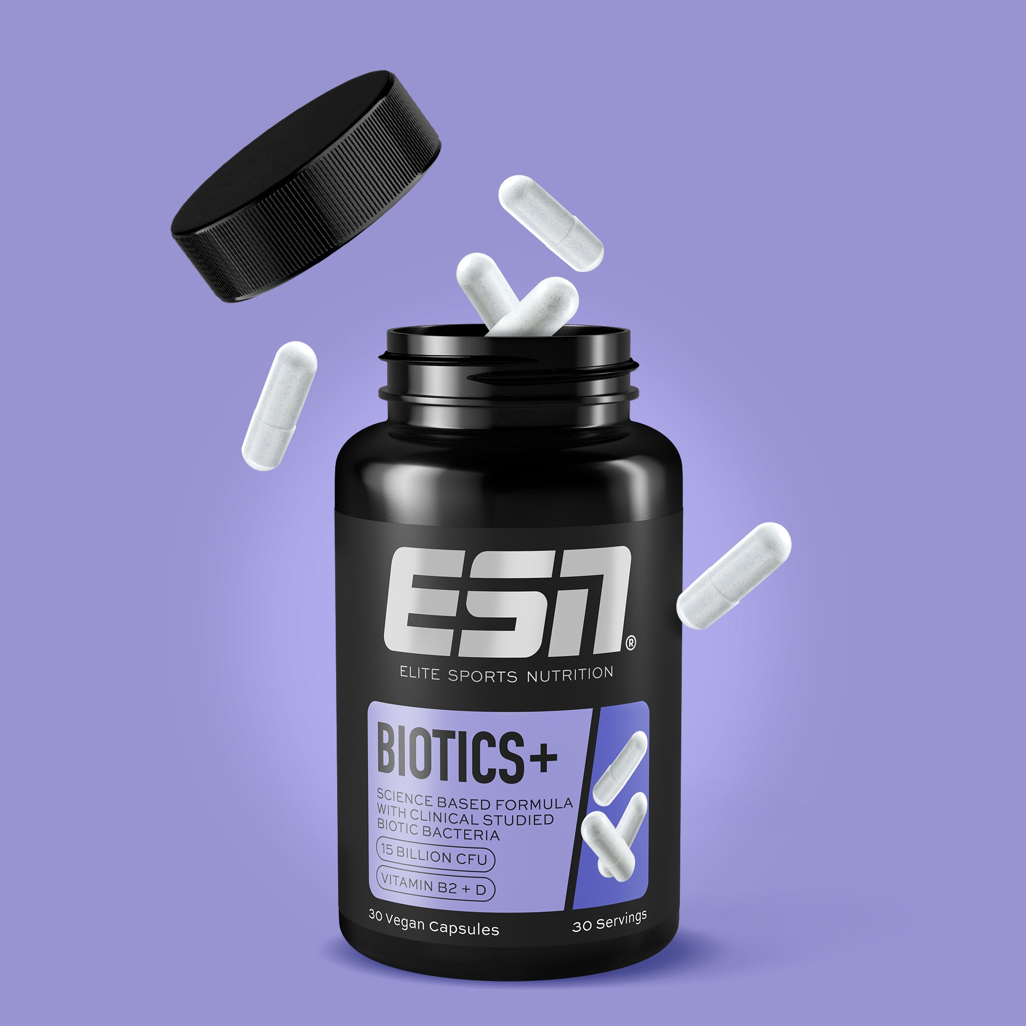 Maize Starch, Bacterial Strains (freeze-dried)¹, Capsule Shell (Hydroxypropylmethylcellulose), Anti-Caking Agent (Magnesium Salts of FattyAcids), Riboflavin (Vitamin B2), Vitamin D (D3/Cholecalciferol)*With 4 bacterial strains examined in clinical studies. The safety (including during pregnancy and lactation) and tolerance of the human-origin bacterial strains to stomach acid and bile salts were studied and confirmed in clinical trials according to the gold standard in humans. The included bacterial strains have thus been proven to have the ability to colonize and multiply in the intestinal flora.The viability of at least 15 billion bacteria until the end of the minimum shelf life was tested under consideration of the storage instructions.