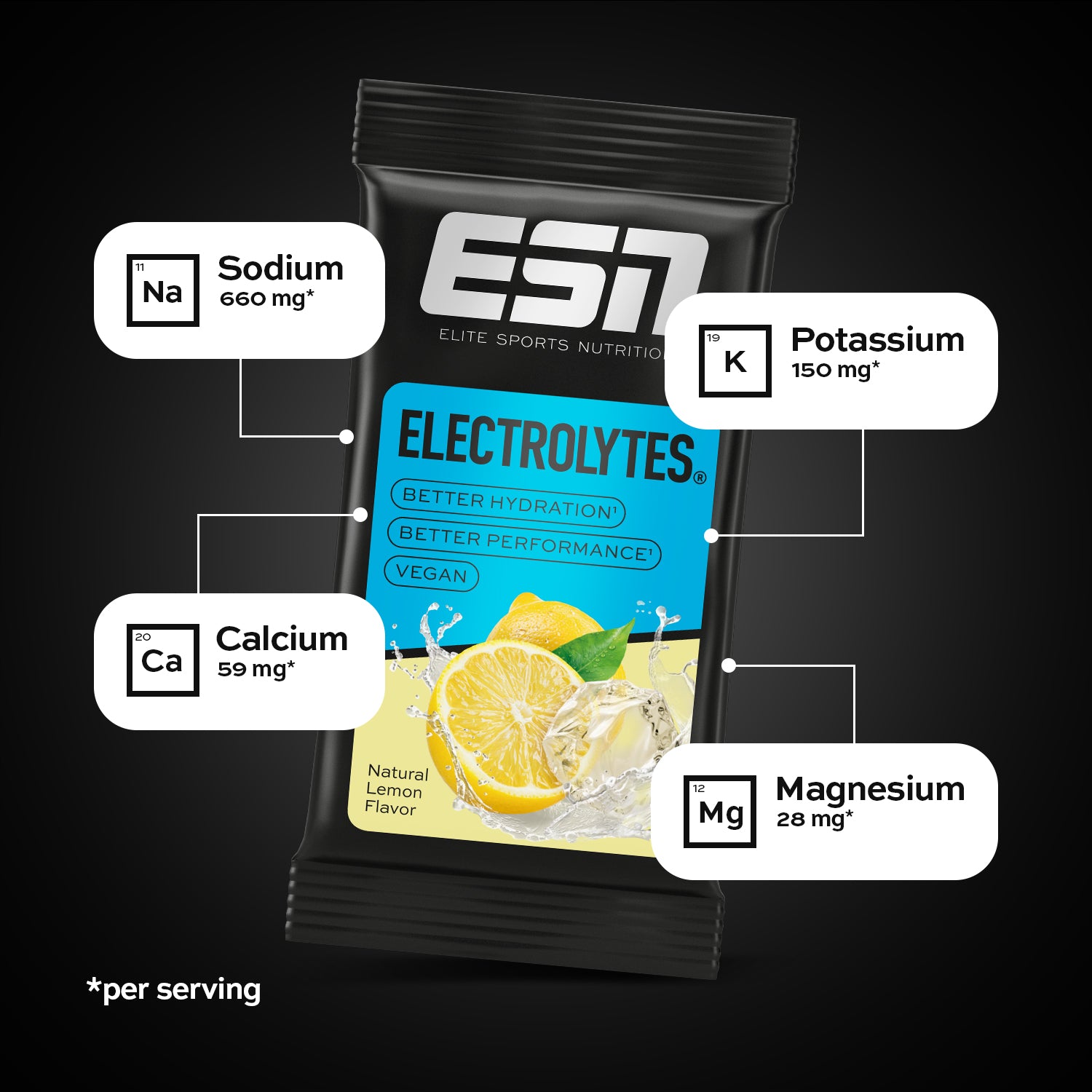 Dextrin, Acid (Citric Acid), Flavoring, Sodium Bicarbonate, Sodium Chloride, Sodium Citrate, Calcium Gluconate, Coloring Foods (Beetroot Powder), Potassium Chloride, Magnesium Citrate, Potassium Citrate, Sweeteners (Sucralose, Acesulfame K), Color (Carotenes). Origin ingredients: EU/Non-EU.Electrolytes Key Facts