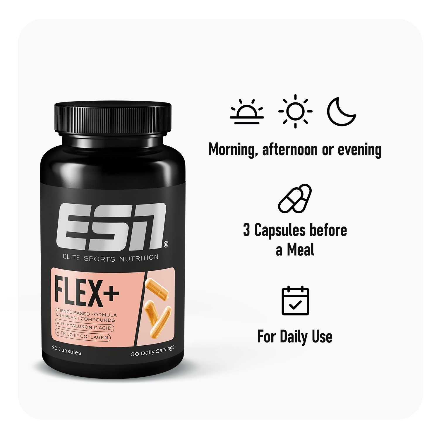 Our Flex+ capsules combine a blend of micronutrients and valuable plant extracts. Vitamin C supports normal collagen formation, essential for the function of bones and cartilage. Zinc and manganese help maintain normal bones, while copper contributes to the maintenance of normal connective tissue. Manganese also plays a role in the normal formation of connective tissue.