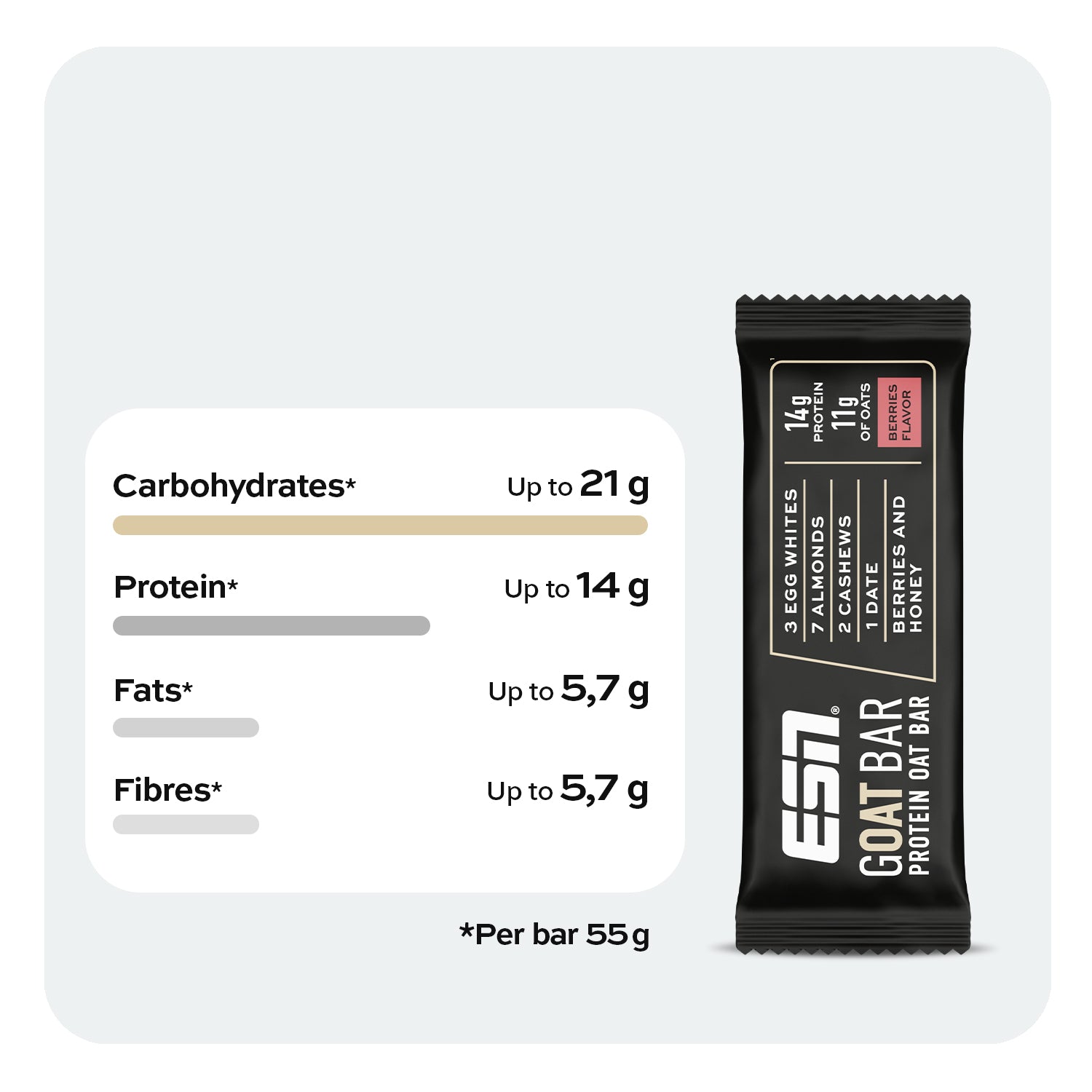 Busy mornings? Breakfast is often skipped — and most quick fixes are packed with sugar, additives and empty calories, leaving you hungry again in no time. That’s where the GOAT Bar makes the difference: it's protein porridge in a bar. With high-quality protein from egg whites, complex carbs from oats, healthy fats from nuts, and natural sweetness from fruit and honey.1