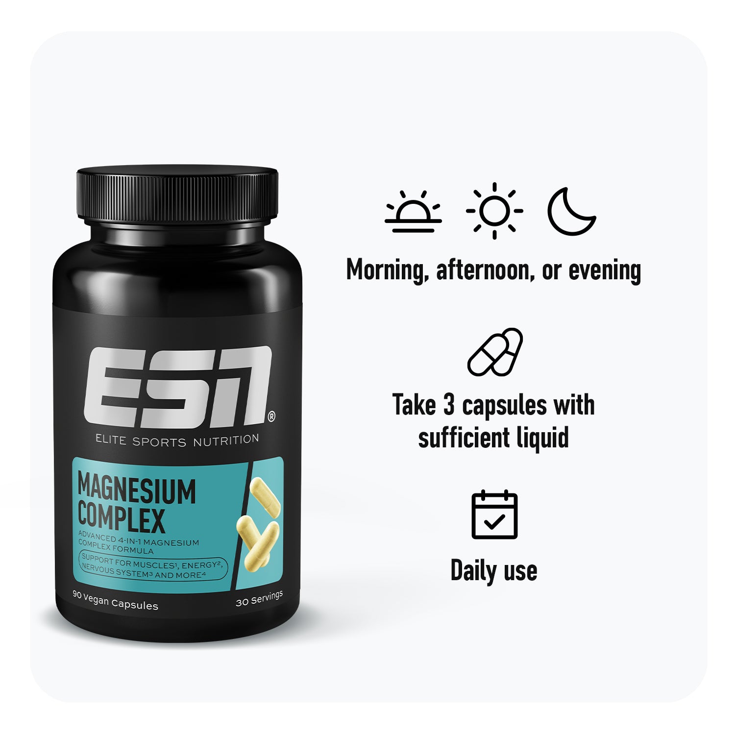 This innovative formula combines four forms of magnesium to provide optimal support for muscle function, energy metabolism, the nervous system, and more.1 The ideal foundation for maximum performance and faster recovery.1