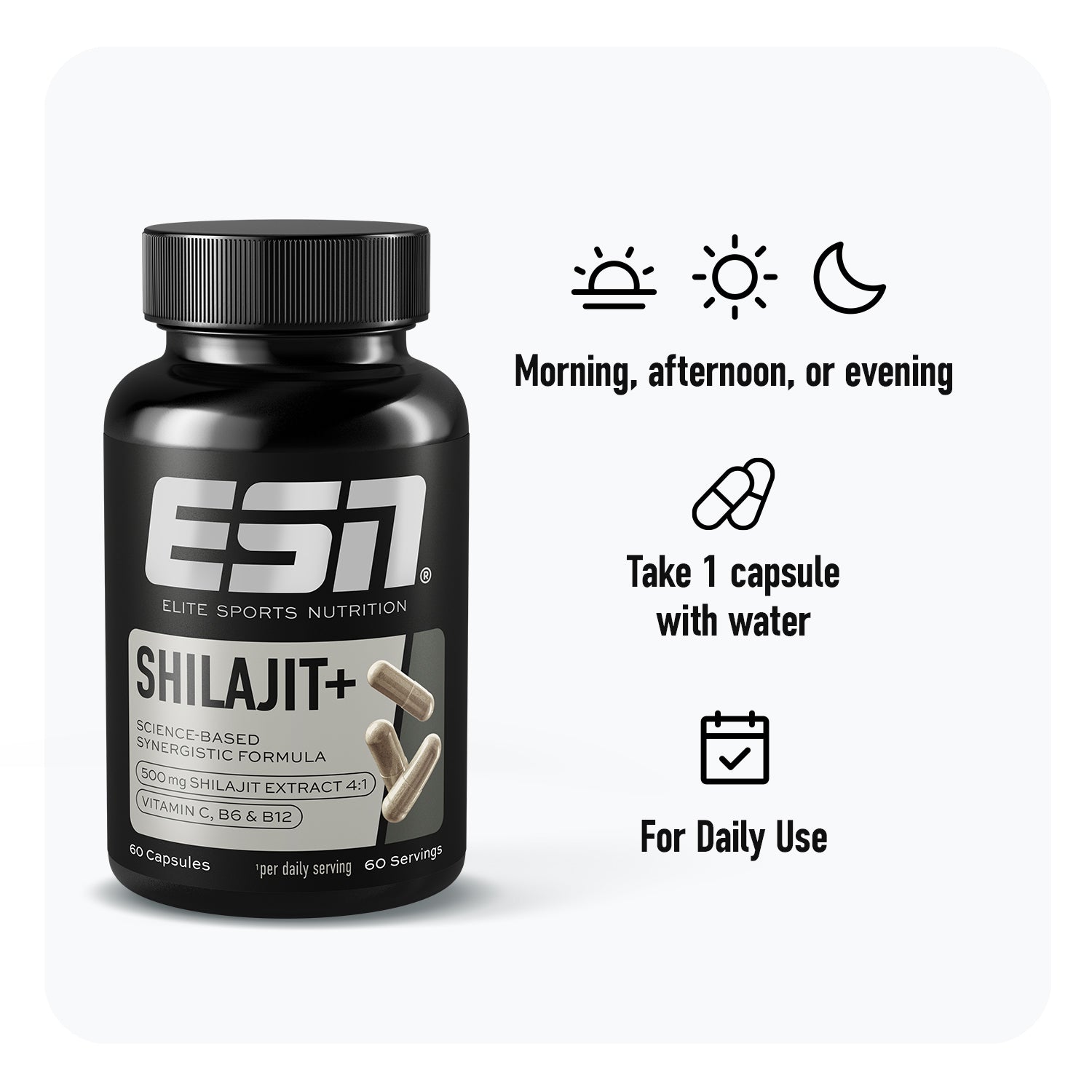 Shilajit Extract 4:1 (Asphaltum punjabianum), Capsule Shell (Hydroxypropylmethylcellulose), Vitamin C (L-Ascorbic Acid), Black Pepper Extract (Piper nigrum), Vitamin B6 (Pyridoxine Hydrochloride), Vitamin B12 (Methylcobalamin).Key Facts - Shilajit+